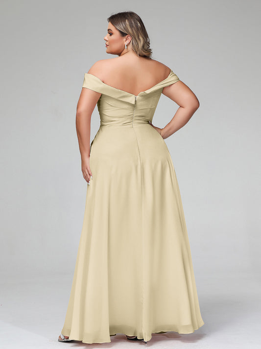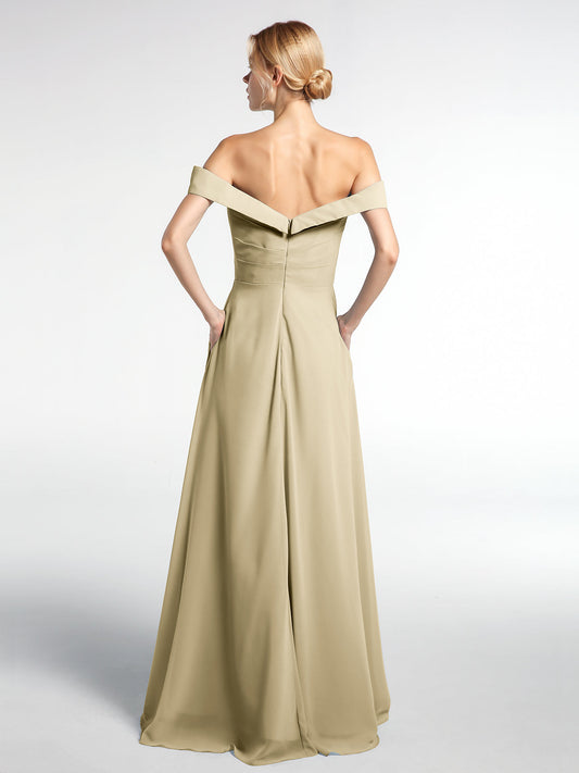 Babaroni JeanVestido de falda circular con hombros descubiertos y bolsillos Champán Tallas Grandes