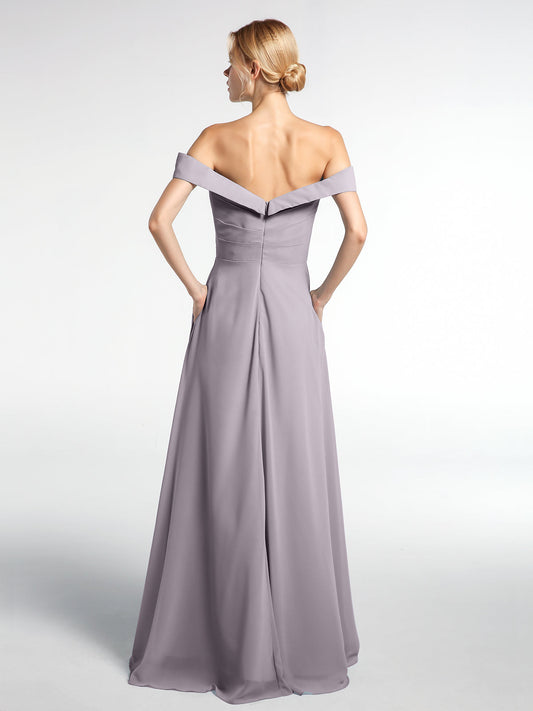 Babaroni JeanVestido de falda circular con hombros descubiertos y bolsillos Ciruela
