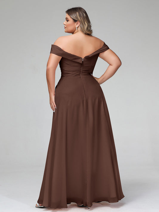Babaroni JeanVestido de falda circular con hombros descubiertos y bolsillos Chocolate Tallas Grandes