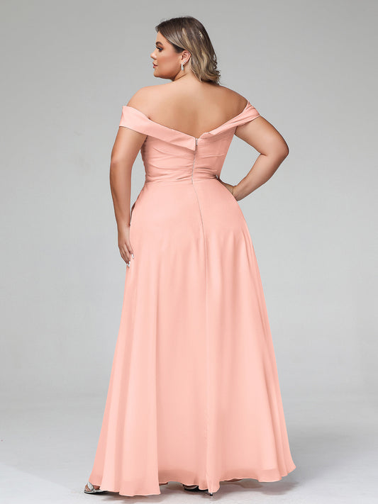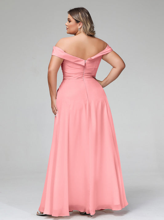 Babaroni JeanVestido de falda circular con hombros descubiertos y bolsillos Coral Tallas Grandes