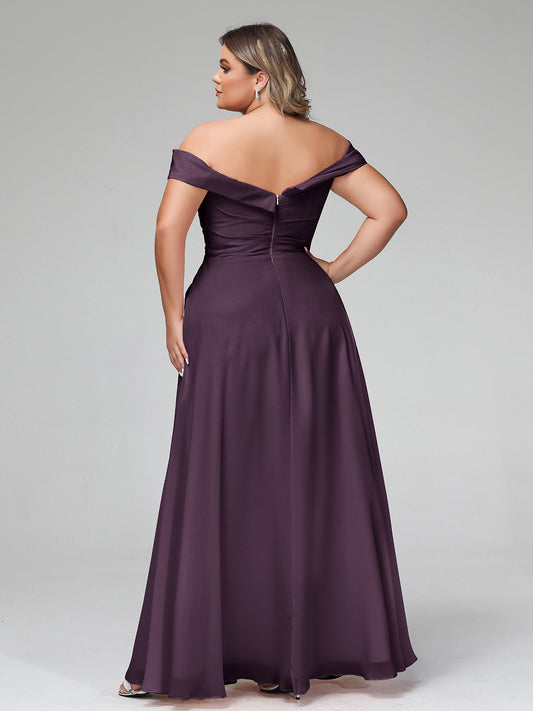 Babaroni JeanVestido de falda circular con hombros descubiertos y bolsillos Ciruela Tallas Grandes