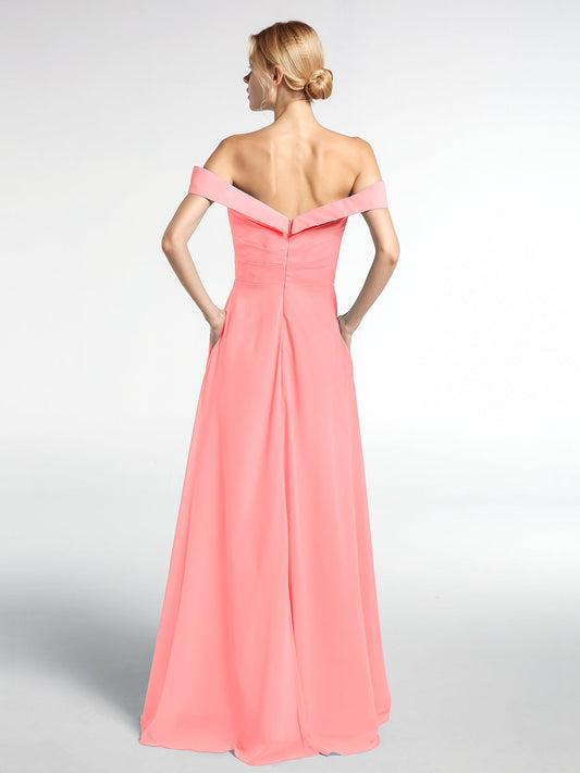 Babaroni JeanVestido de falda circular con hombros descubiertos y bolsillos Coral
