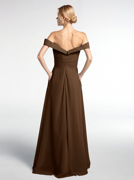 Babaroni JeanVestido de falda circular con hombros descubiertos y bolsillos Marrón Tallas Grandes
