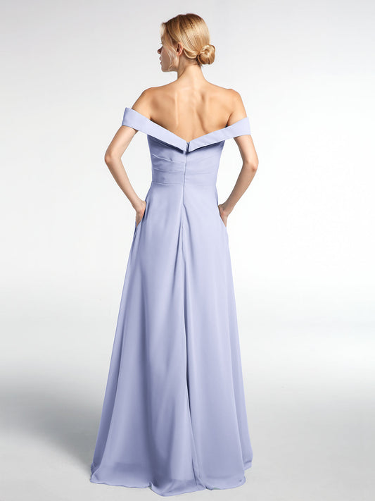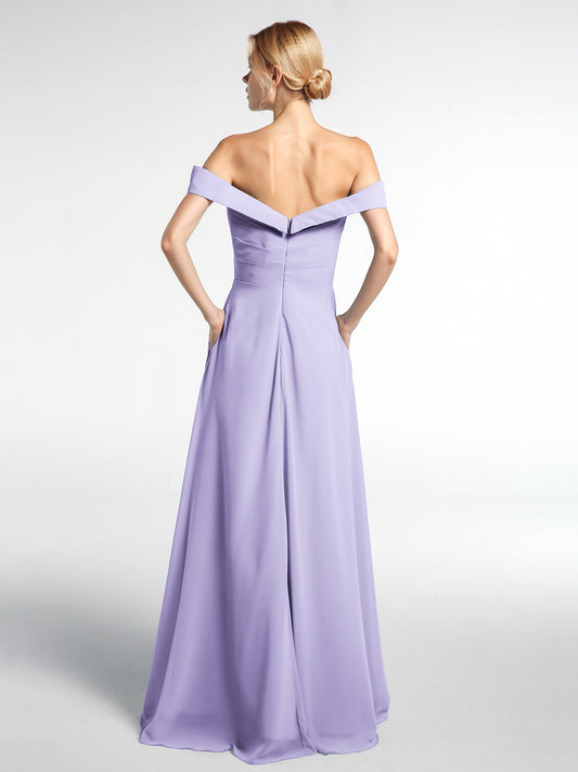 Babaroni JeanVestido de falda circular con hombros descubiertos y bolsillos Lavanda