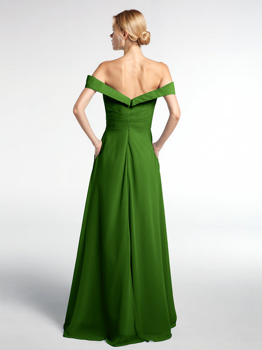 Babaroni JeanVestido de falda circular con hombros descubiertos y bolsillos Musgo