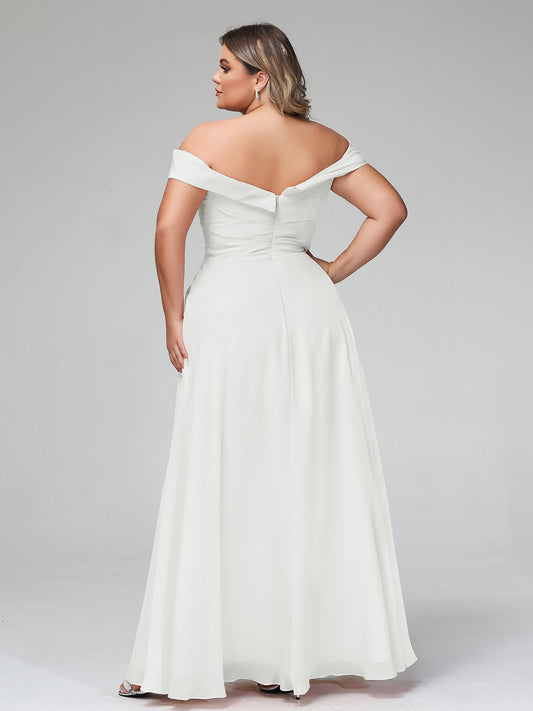 Babaroni JeanVestido de falda circular con hombros descubiertos y bolsillos Marfil Tallas Grandes