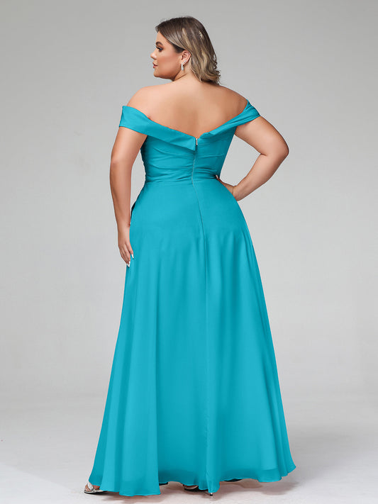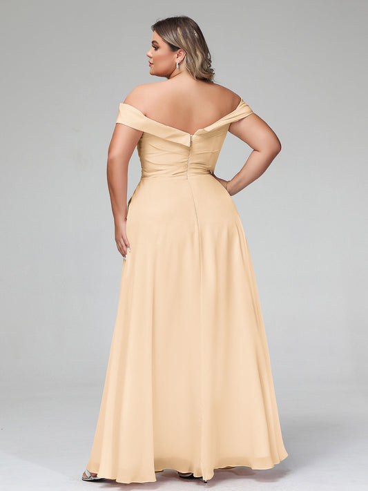 Babaroni JeanVestido de falda circular con hombros descubiertos y bolsillos Melocotón Tallas Grandes