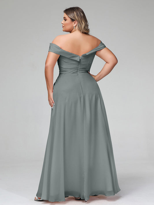 Babaroni JeanVestido de falda circular con hombros descubiertos y bolsillos Gris Acero Tallas Grandes