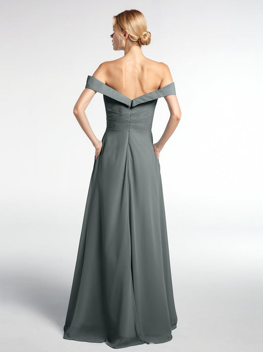 Babaroni JeanVestido de falda circular con hombros descubiertos y bolsillos Gris Acero