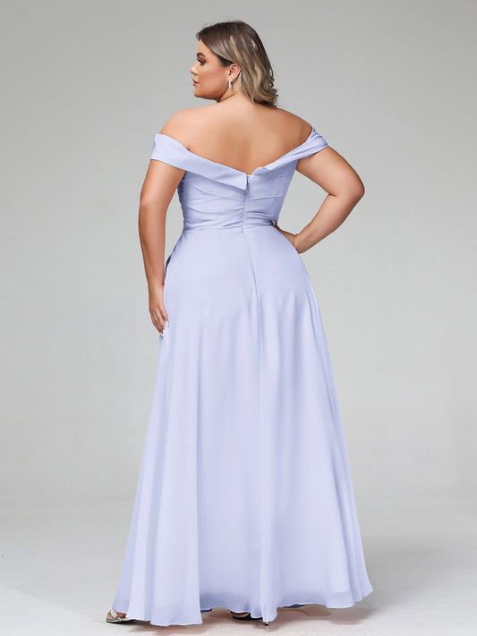Babaroni JeanVestido de falda circular con hombros descubiertos y bolsillos Lavanda Tallas Grandes