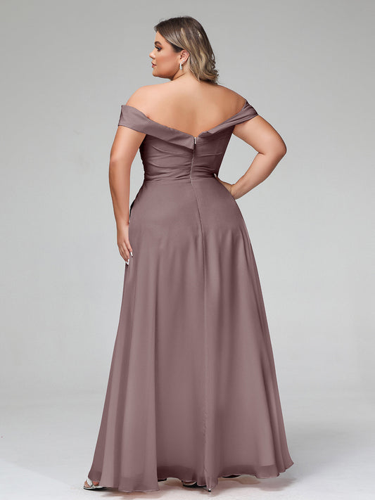 Babaroni JeanVestido de falda circular con hombros descubiertos y bolsillos Malva Vintage Tallas Grandes