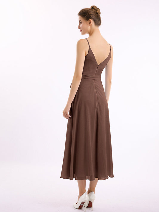 Babaroni ErinVestido de longitud T con tirantes finos y lazo de cinturón Chocolate Tallas Grandes