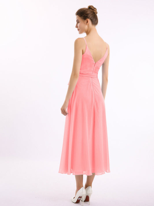 Babaroni ErinVestido de longitud T con tirantes finos y lazo de cinturón Coral Tallas Grandes