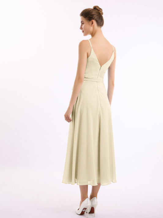 Babaroni ErinVestido de longitud T con tirantes finos y lazo de cinturón Champán Tallas Grandes