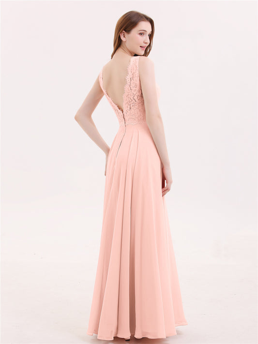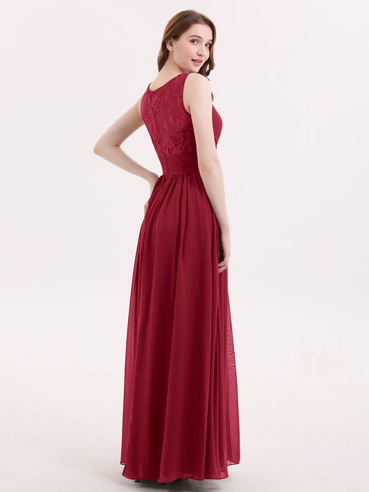 Babaroni AdalynAdalyn Escote En V Gasa Y Encaje Maxi Corte De Dama De Honor Borgoña