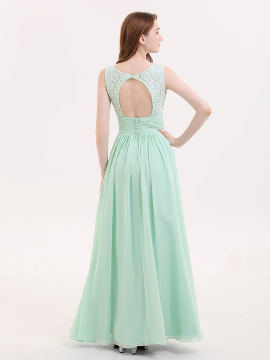 Babaroni GwendolynGwendolyn Encaje Y Gasa Largo Corte De Dama De Honor Verde Menta