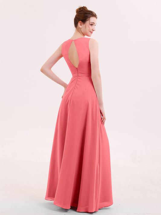 Babaroni FannyFanny Cabestro Largo Gasa Vestido De Dama De Honor Coral