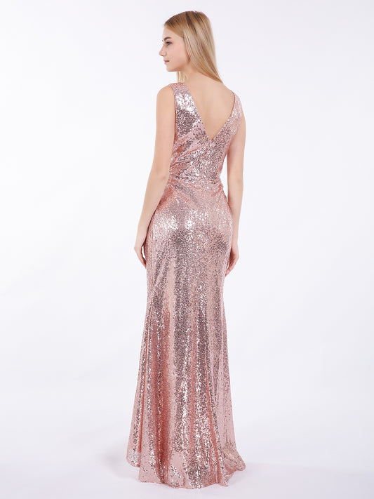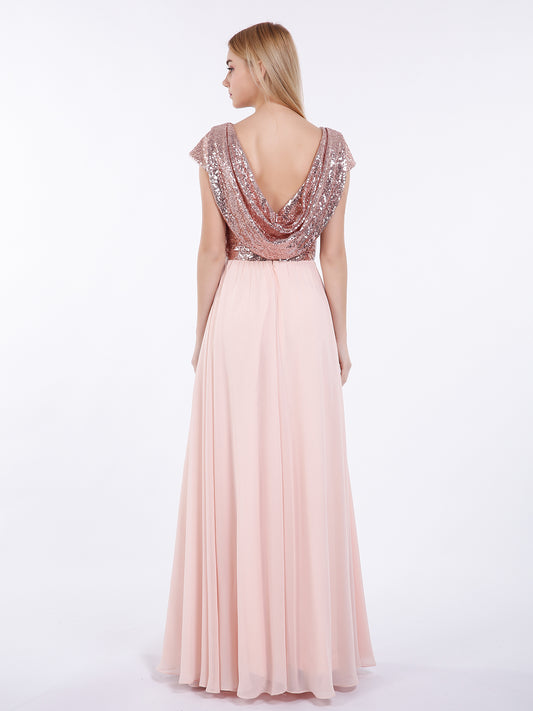 Babaroni AmarisAmaris Lentejuelas Largo Vestido Con Mangas De La Tapa Rose Gold