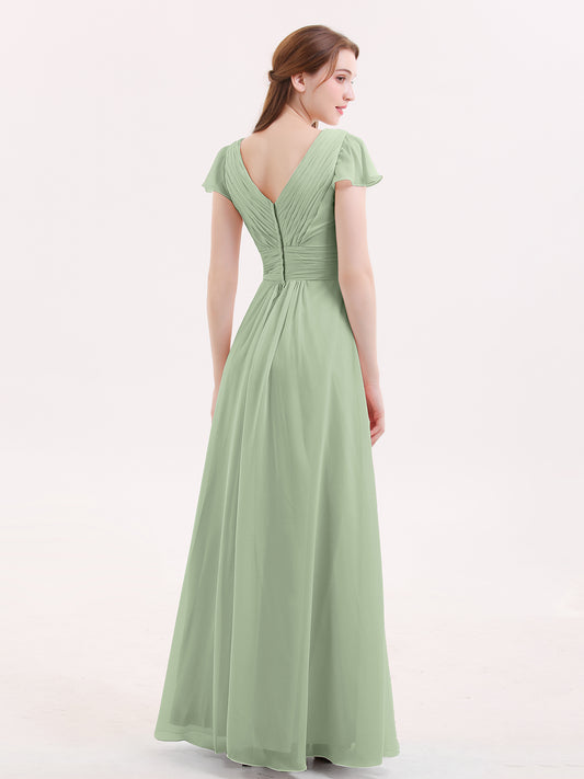 Babaroni JacquelineJacqueline Largo Gasa Vestido De Dama De Honor Con Mangas De La Tapa Salvia Polvorienta