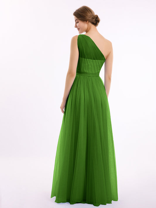 Babaroni AngelinaAngelina Un Hombro Malla Corte De Dama De Honor De Fiesta De Boda Musgo