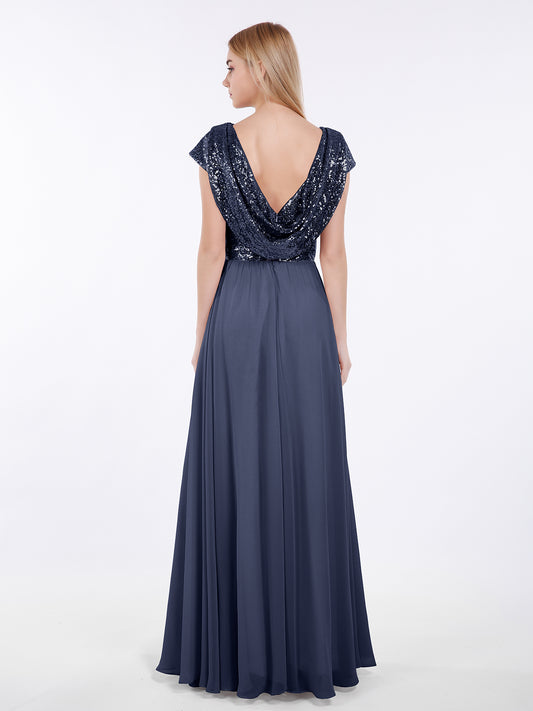 Babaroni AmarisAmaris Lentejuelas Largo Vestido Con Mangas De La Tapa Azul Marino
