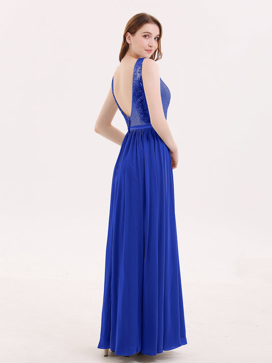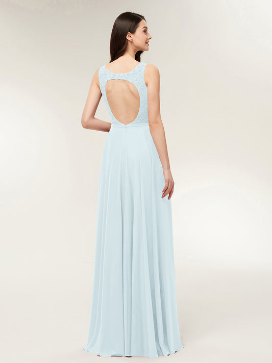 Babaroni DorisDoris Cabestro Gasa Maxi Vestido De Dama De Honor Azul