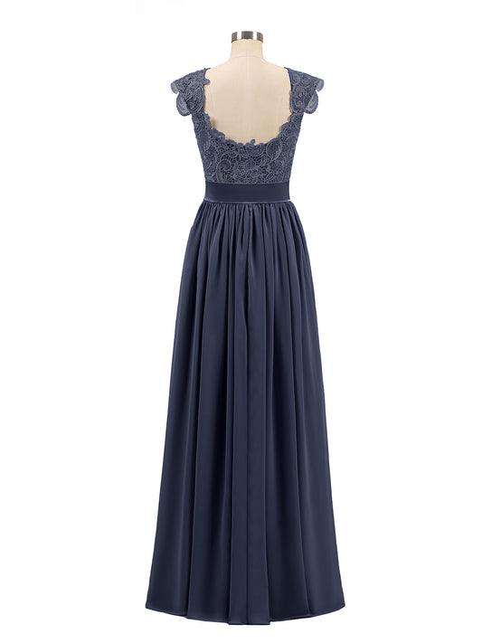 Babaroni JenniferJennifer Largo Gasa Vestido Con Encaje Corpino Aplicado Azul Marino