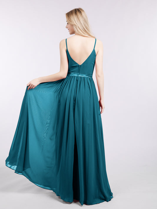 Babaroni LeonaLeona Tirante Espagueti Gasa Vestido De Dama De Honor Azul Tinta