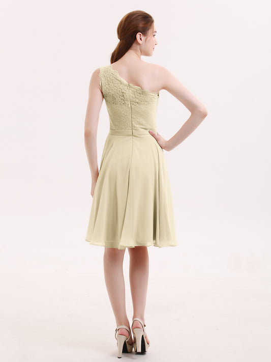 Cheryl Un Hombro Corte Encaje Vestido De Dama De Honor Champán