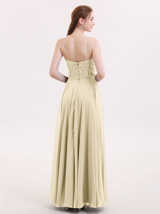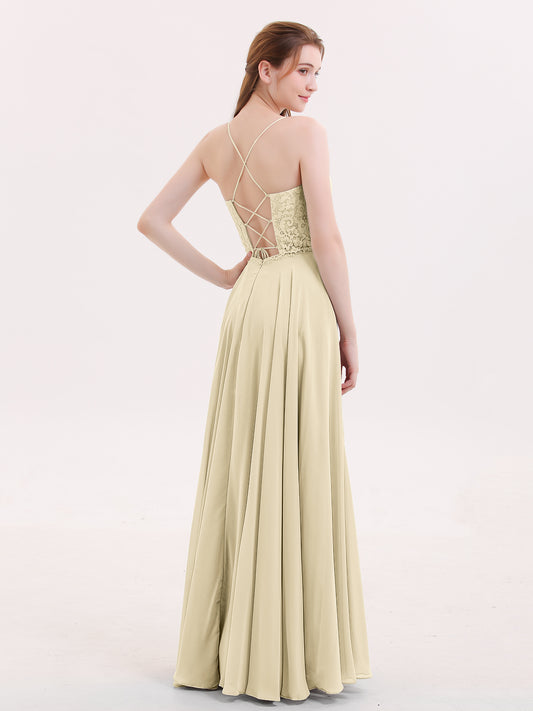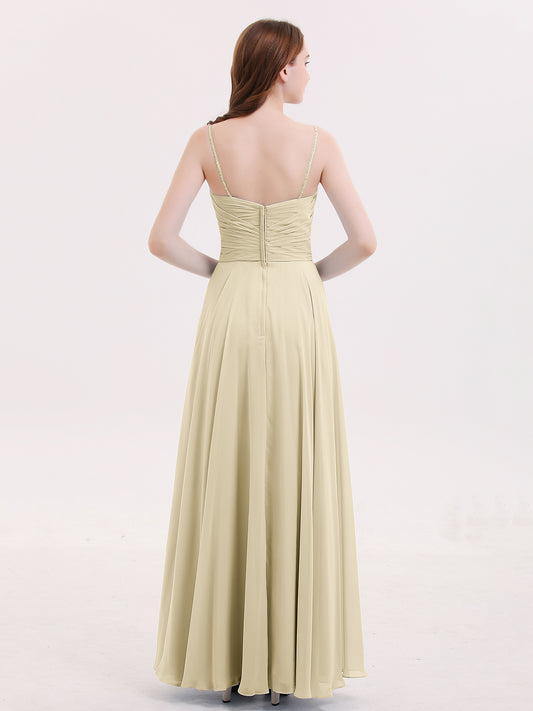 Lisa Imperial Corte De Dama De Honor Con Tirante Espagueti Champán