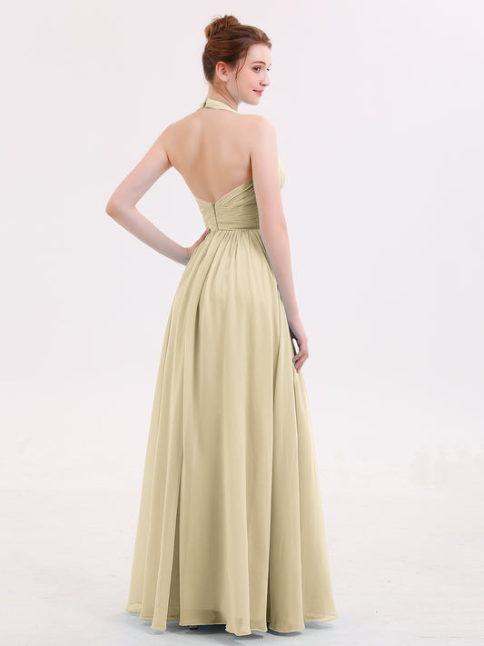 Nydia Cabestro Escote En V Corte De Dama De Honor Champán