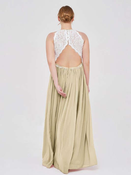 Babaroni ValerieValerie Encaje Y Gasa Vestidos Con Espalda Abierta Champán