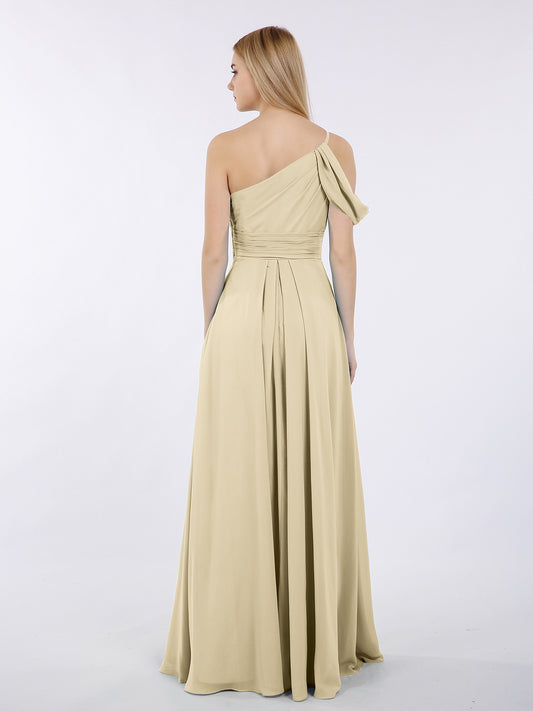 Babaroni PrudencePrudence Un Hombro Gasa Largo Cortes De Dama De Honor Champán