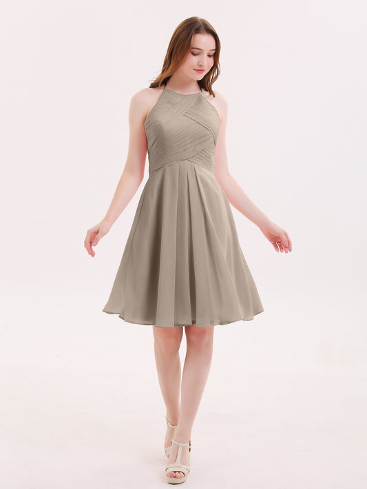 Olga Corto Gasa Vestido De Dama De Honor Con Bolsillo Topo