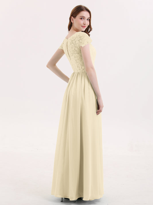 Babaroni PearlPearl Largos Vestidos De Dama De Honor Con Mangas De La Tapa Champán
