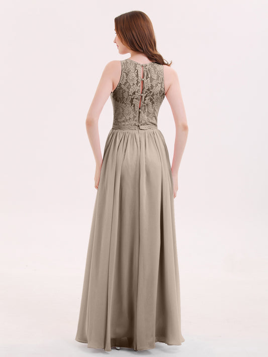 Babaroni SuzanneSuzanne Encaje Largo Vestido Con Novio Espejismo Topo