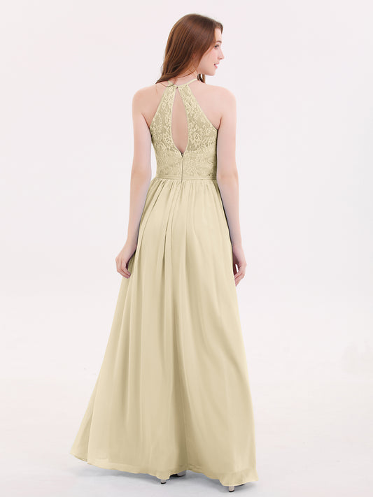 Babaroni AdalynAdalyn Escote En V Gasa Y Encaje Maxi Corte De Dama De Honor Champán
