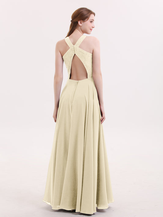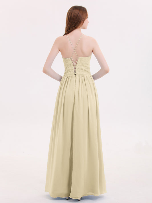 Babaroni FannyFanny Cabestro Largo Gasa Vestido De Dama De Honor Champán