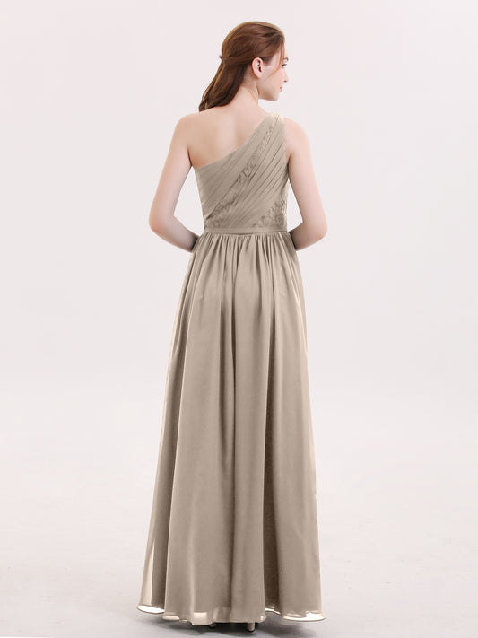 Babaroni PhoenixPhoenix Un Hombro Gasa Y Encaje Vestido De Dama De Honor Topo