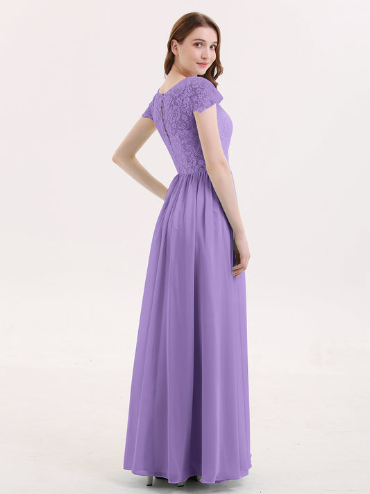 Babaroni SuzanneSuzanne Encaje Largo Vestido Con Novio Espejismo Lavanda
