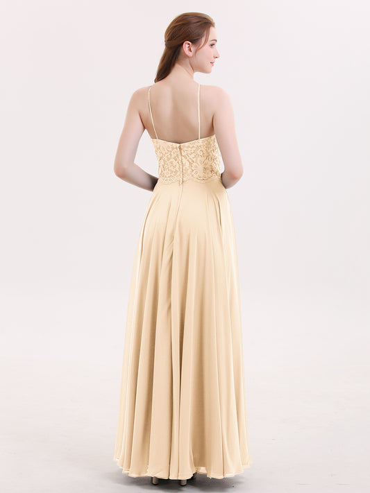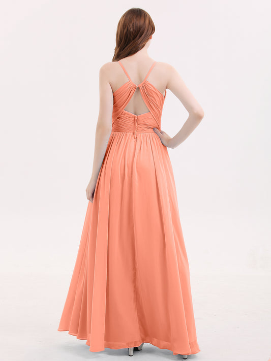 Babaroni DorisDoris Cabestro Gasa Maxi Vestido De Dama De Honor Melocotón