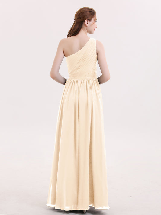 Phoenix Un Hombro Gasa Y Encaje Vestido De Dama De Honor Melocotón