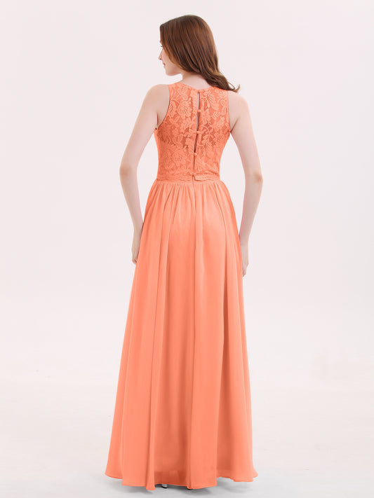 Tallulah Encaje Y Gasa Vestido De Dama De Honor Melocotón