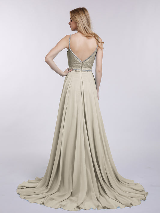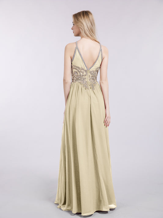Babaroni MavisMavis Largo Hasta El Topillo Corte Con Escote En V Champán