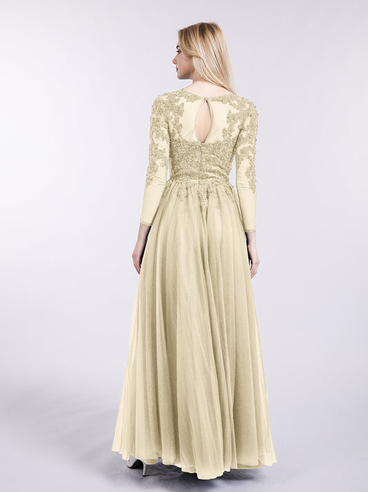 Babaroni MarthaMartha Tul Aplicado Largo Mangas Vestido Champán