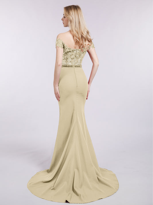 Babaroni NoraNora Fuera Del Hombro Sirena Corte Con Tren Champán