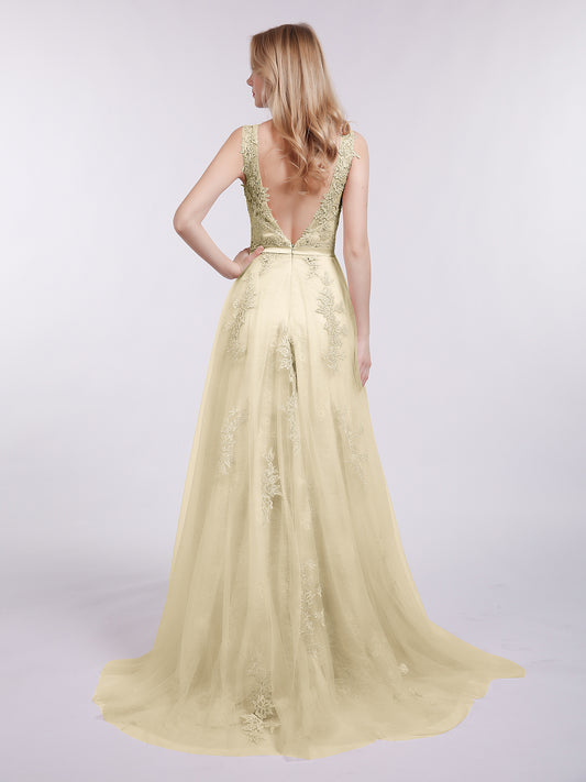 Babaroni JoanJoan Encaje Y Tul Largo Corte Con Novio Champán