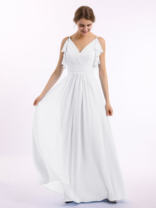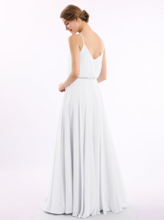 Babaroni VickyVestidos de dama de honor de chiffon con escote en V y tirantes finos Blanco