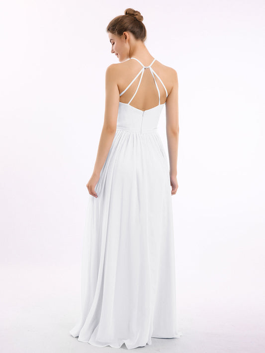 Babaroni LesleyVestidos largos de chiffon estilo halter con doble tirante Blanco