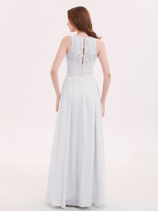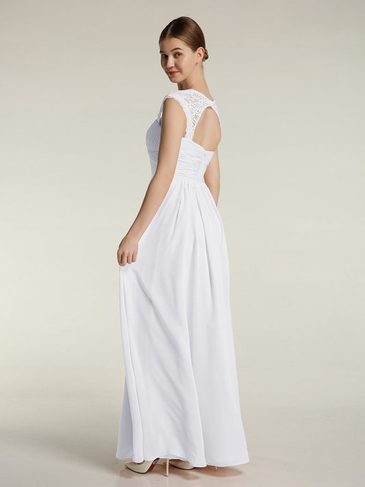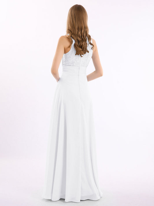 Babaroni LucilleVestidos largos de chiffon con encaje en escote en V profundo y espalda descubierta Blanco